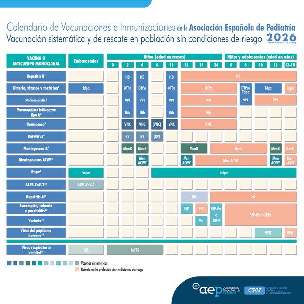 Calendario de vacunaciones e inmunizaciones de la AEP 2026