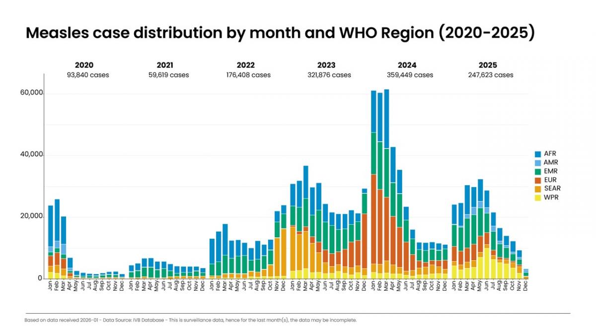 Figura 37.1. El sarampión en el mundo entre 2020 y 2025 (enero 2026).
