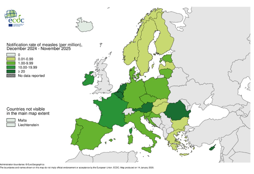 - European Centre for Disease Prevention and Control. Measles and Rubella Monthly Report. Noviembre de 2025.