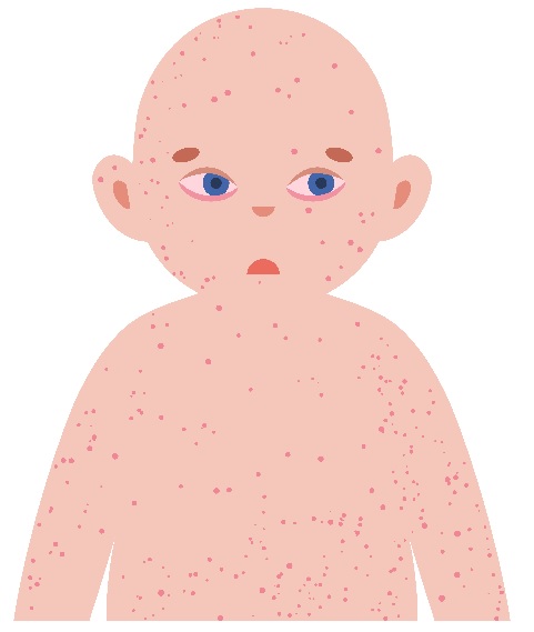 El que padece esta infección suele tener fiebre escasa y una erupción de puntos rosados dispersos por todo el cuerpo. También es clásico que aumenten de tamaño los ganglios del cuello, y la artritis en los adultos.