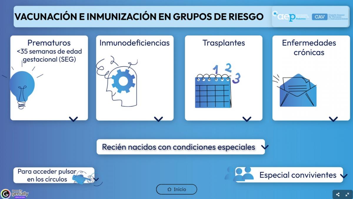 Su desarrollo final contará con un apartado dedicado a la vacunación pediátrica -desarrollado por el CAV-AEP- y otro apartado dedicado a la de los adultos -que está en construcción de manos de la AEV.