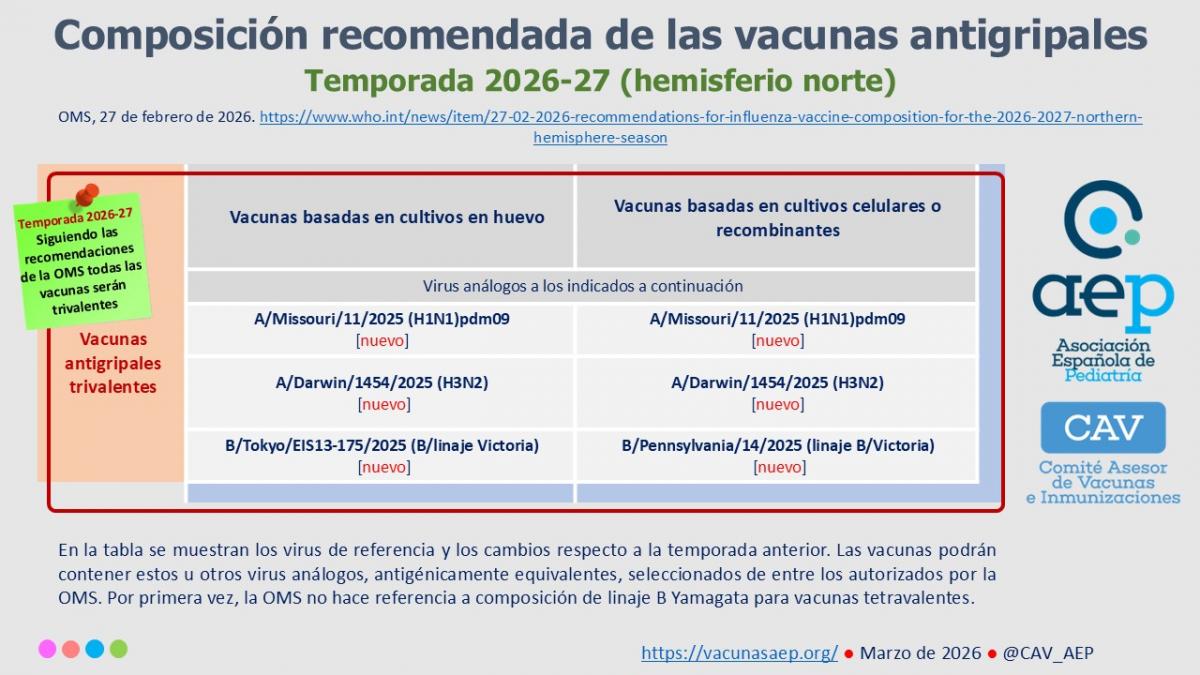 - CAV-AEP, 4 de marzo de 2024. Composición de las vacunas antigripales de la próxima temporada, 2024-25.