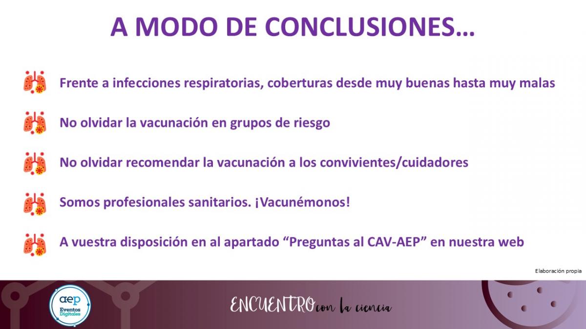 Se destacaron las recomendaciones del Ministerio de Sanidad para dichas infecciones y las del CAV-AEP. Y finalmente, como es habitual, se resolvieron las dudas de los asistentes de manera virtual al encuentro.