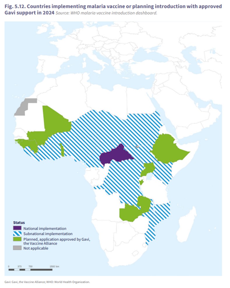 Países que implementan la vacuna contra la malaria o planean introducirla con aprobado de GAVI en 2024. Fuente: OMS.